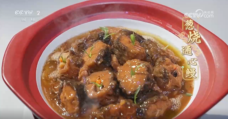 Braised Scallion Eel (Cong Shao Tongxin Man), a dish traditionally enjoyed during festive celebrations.