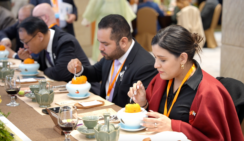Foreign diplomats in China savour the Song-Yuan Maritime Silk Road Banquet. (Photo by Zhang Hexuan)