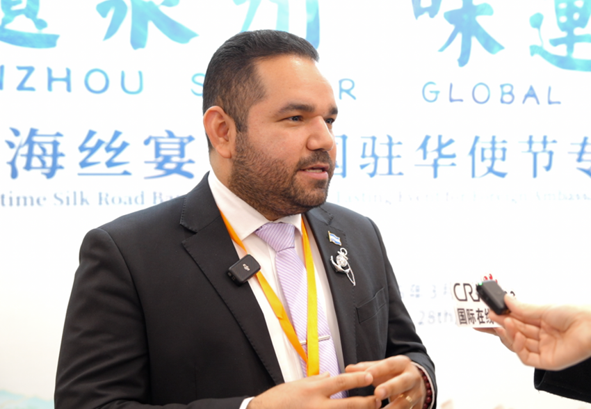Conrado Sol, Minister Counsellor at the Nicaraguan Embassy in China, discusses cultural exchange in an interview with China Media Group International Online. (Photo by Zhang Hexuan)
