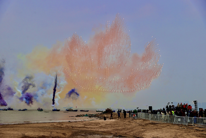 The story of unity and perseverance is a central theme in the UNESCO Maritime Silk Road series, especially in the volume Quanzhou: The World Port at the Eastern Edge of the Maritime Silk Routes. Despite two days of meticulous rehearsals, challenging weather conditions tested the event’s resilience on December 8. In the Red Sails chapter, 26 boats launched a dazzling array of fireworks at sea. Moments later, a fleet of drones formed a dramatic "sailing ship" of fireworks, slicing through the wind and waves. This powerful image symbolized Quanzhou’s long-standing connection to the sea. The sight of red sails unfurling across the sky, powered by thousands of drones, brought to mind the Wangchuan Ceremony, a shared UNESCO Intangible Cultural Heritage between Quanzhou, Xiamen, and Malaysia.