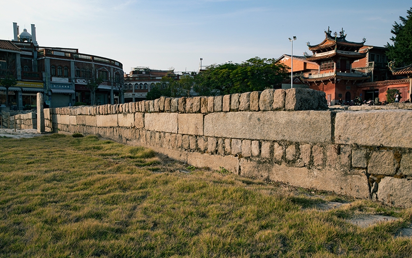 The Site of Deji Gate is a representative component testifying to the Institutional Guarantee of Quanzhou as a maritime trade emporium of the world. The site holds what remains of the southern city gate from the Song-Yuan era and bears a testimony to the history of the city's southward expansion. As a major landmark within the commercial district on the south side of the city, the Site of Deji Gate stands testament to the government's administrative assurance for the development of maritime trade and commerce within the city. It is located at the southern extreme of the old city of Quanzhou, outside Tianhou Temple, which faces the Jinjiang River and the Site of Shunji Bridge. Deji Gate, and the Yicheng, known as "the wing wall", to which it was connected, were first built in 1230. It became the main route by which people gained access to the commercial district on the south side of the city. The site of the gate was expanded in 1352 during the Yuan Dynasty. In the Ming Dynasty, a barbican was constructed for the gate, and in the Qing Dynasty, the gate underwent repairs and reinforcements. Up until the middle of the 20th century, the gate remained in regular use, giving it a history of over 700 years. Archaeological excavations in 2001 fully revealed the remains of the various phases of construction on the site from the 13th century. Facing southward, the site covers an area of 2,000 square meters. Built of granite slabs and with old abandoned architectural elements, it is partly reinforced using lime grouting.
