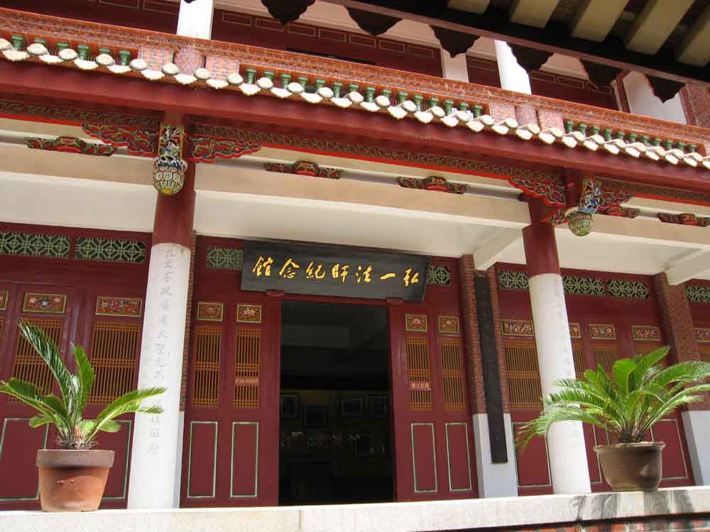 弘一法师纪念馆位于鲤城区开元寺内尊胜院,陈列有我国新文化运动先驱之一、近代高僧弘一法师(李叔同)一生中的最后14年在泉州生活的史料、照片、著作和墨宝。弘一法师圆寂后遗骨葬于泉州清源山和杭州虎跑寺。