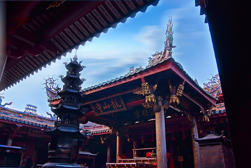 “龙山寺”在晋江市安海镇,省重点文物保护单位。始建于隋皇泰年间(618-619),初名普现寺,吞并竺寺,明清几经重修。该寺历千余年,传布广远。现台湾有龙山寺多座,都从安海祖寺分炉。寺前有月池一洼,山门为石牌坊,上刻“天竺梵钟”四个大字。进了山门,但见寺的前墙上嵌一大石碑,刻“龙山宝地”。
