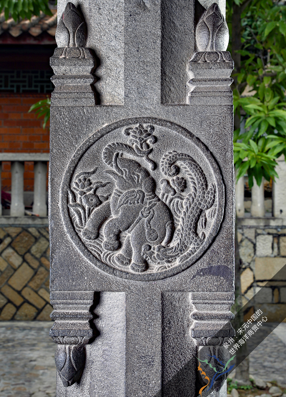 【大雄宝殿月台须弥座】大殿月台须弥座很特别,它的束腰处有73方狮子与人面狮身石刻,这与南印度朱罗时期的印度教寺院里的人面狮身石刻风格非常相似。根据研究,该须弥座是明代重修开元寺时从元末废弃坍塌的印度教寺移用至此。(这处须弥座反映出两个珍贵的信息,其一,13世纪时泉州兴建了在中国其他地区基本没有留下遗迹的印度教寺院。其二,17世纪大殿重修时,在这座发展成熟了的中国佛教寺院中,居然使用了印度教主题的建筑构件,可谓是非常罕见的文化现象,侧面体现了泉州本土文化的多元包容独特传统。