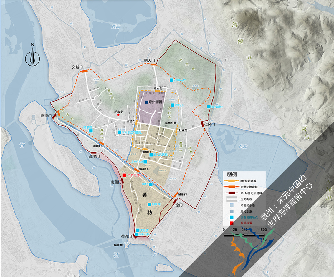 相关考古调查发掘研究工作,确认了泉州市舶司遗址的位置,其格局基本保存完整,位于泉州城南部郊区,结合泉州市舶司遗址周围水系、道路的构成等因素,泉州市舶司遗址,范围大致是马坂巷、水沟巷、竹巷、水门巷围合的这一区域。市舶司作为海上贸易的直接管理机构,泉州市舶司的建立从官方层面对闽南海外贸易的重要性给予了认可,同时也进一步推动了海外贸易繁荣。建筑规格、出土遗物等情况从侧面说明了泉州宋元时期海上贸易活动的繁盛,同时证明了宋代泉州的商业核心区或建在南部郊区,为研究泉州宋元时期的政治、文化、交通、贸易等提供了重要的实证资料。