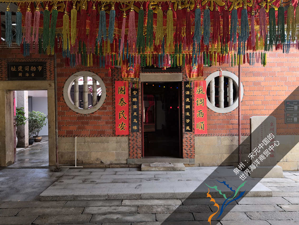 【背景】伴随着泉州海外贸易的日渐兴盛,大量蕃商来到泉州进行交易活动,朝廷对此前的政策做出调整,一方面为了获得更多的税收,另一方面也希望对海外贸易实施有效的控制,于是在北宋元祐二年(1087年)于泉州城南晋江江畔处设置了市舶司。据史志文献的记载,泉州市舶司位于南薰门(又称水仙门、水门)内、镇南门外,其西侧有水沟巷。一直到明成化八年(1472年),市舶司才移置福州。市舶司迁福州后,这里也就逐渐荒废,并渐为民居所占用。现在,我们除了在水仙宫旁设立市舶司遗址保护碑,还配合做了展览来讲述泉州市舶司的历史。
