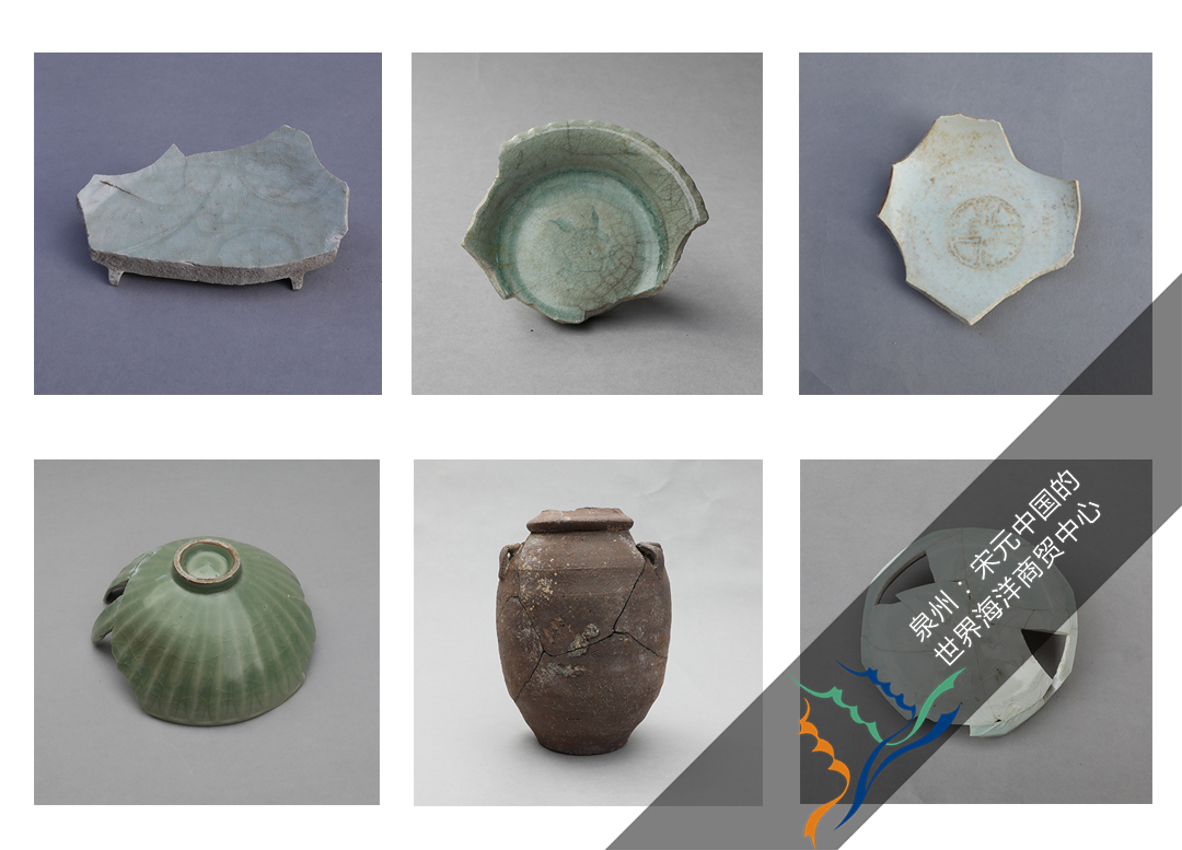 陶瓷器共16551件,有青瓷、白(青白)瓷、黑(酱)釉器、青花瓷等;器形主要有碗、盏、碟、洗、杯、盘、盒、壶、瓶、炉、器盖、罐、缸、杵等。涉及的窑口有泉州地区的晋江磁灶窑、德化窑、南安窑、安溪窑、泉州东门窑等,福建其他地区的厦门汀溪窑、漳平永福窑、闽清义窑、建阳建窑等,福建省外的浙江龙泉窑、越窑、江西景德镇窑、江苏宜兴窑等;年代涉及北宋以来各时期。元代以前的以福建、浙江的窑口为主;明清数量最多的青花瓷主要为安溪窑、德化窑和景德镇窑。