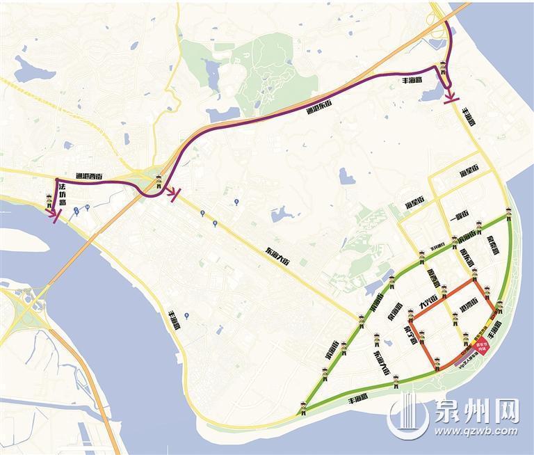 丰泽区滨海公园音乐节期间周边管制路段示意图