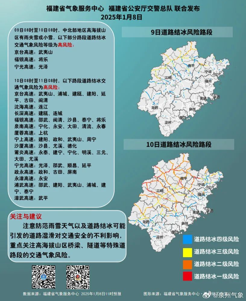 1.预计10日高海拔山区可能出现道路结冰,请关注雨雪和道路结冰对交通的不利影响。相关景区要做好管控,确保安全。
