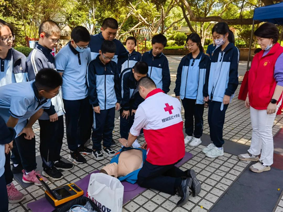 活动现场,泉州市和鲤城区红十字会联合组织应急救护培训师资向泉州六中学生和广大市民普及心肺复苏术、自动体外除颤仪AED使用等急救知识,帮助学生和市民掌握应急救护、防灾避险、自救互救等技能,守护身体健康和生命安全。
