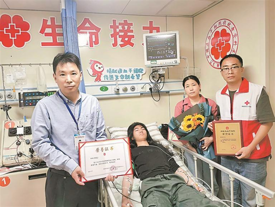 他献了400毫升的血后,工作人员征求他是否愿意多留两试管血样加入中国造血干细胞捐献者资料库,他毫不犹豫地同意了。
