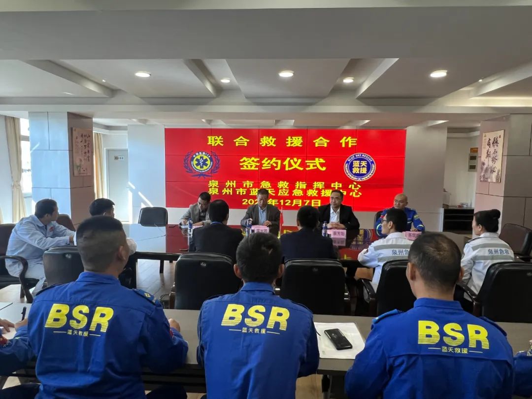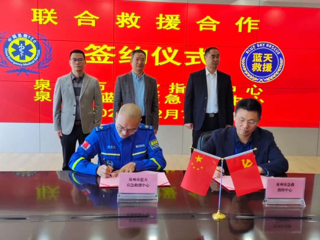 为完善泉州中心城区院前急救救援体系,提高各类复杂环境下的综合医疗急救能力,不断适应新形势新环境发展需求,推动主题教育走深走实,12月7日,泉州市急救指挥中心与泉州市蓝天应急救援中心共同签署联合救援合作协议。泉州市卫生健康委员会四级调研员吴光腾、市委文明办四级调研员蔡芳阳出席签约仪式。